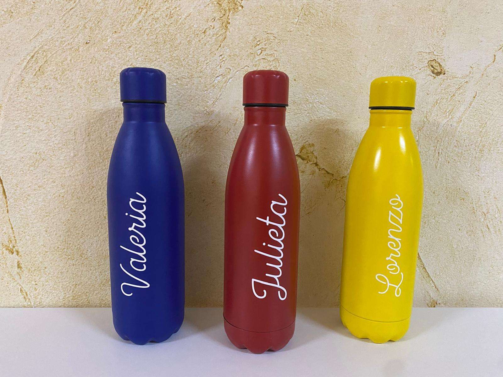 Bidón de acero inoxidable 304 de acabado mate. Capacidad 790 ml. Tapón a juego con el cuerpo de la botella. Disponible en varios colores mates, con los que conseguir un diseño diferente.
