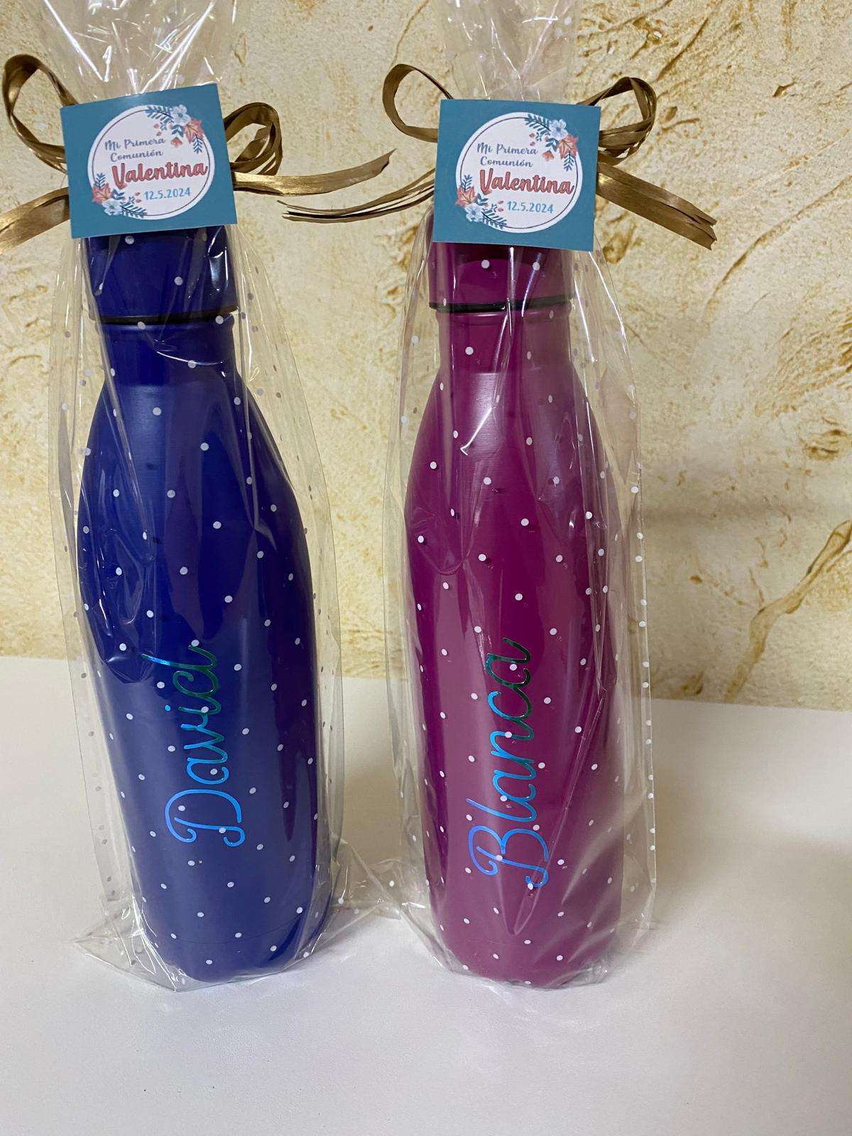 Se personalizan en vinilo con los nombres que se quieran. El nombre hay que ponerlo en las observaciones del pedido. De todas formas cuando se formalice el pedido, hay que dejar un numero de teléfono para comunicarnos haber de que color os gustan los vinilos, para hacerlo totalmente personalizado.
