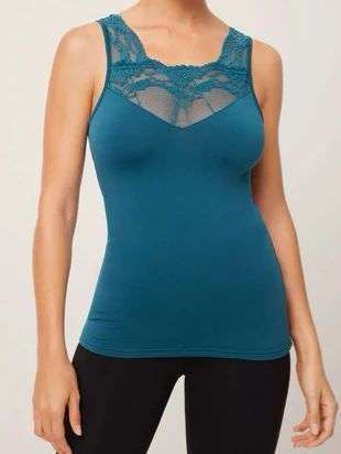 Camiseta térmica sin mangas, el mix perfecto de elegancia y comodidad que necesitas para tu día a día. Con escote de encaje, sin mangas, térmica, granate, azul o negro o burdeos, esta camiseta interior es super versátil y te aporta el toque femenino en una prenda clásica y que no pasa de moda, combinable con cualquier otra prenda exterior y que te brinda la opción del confort sin renunciar a nada.