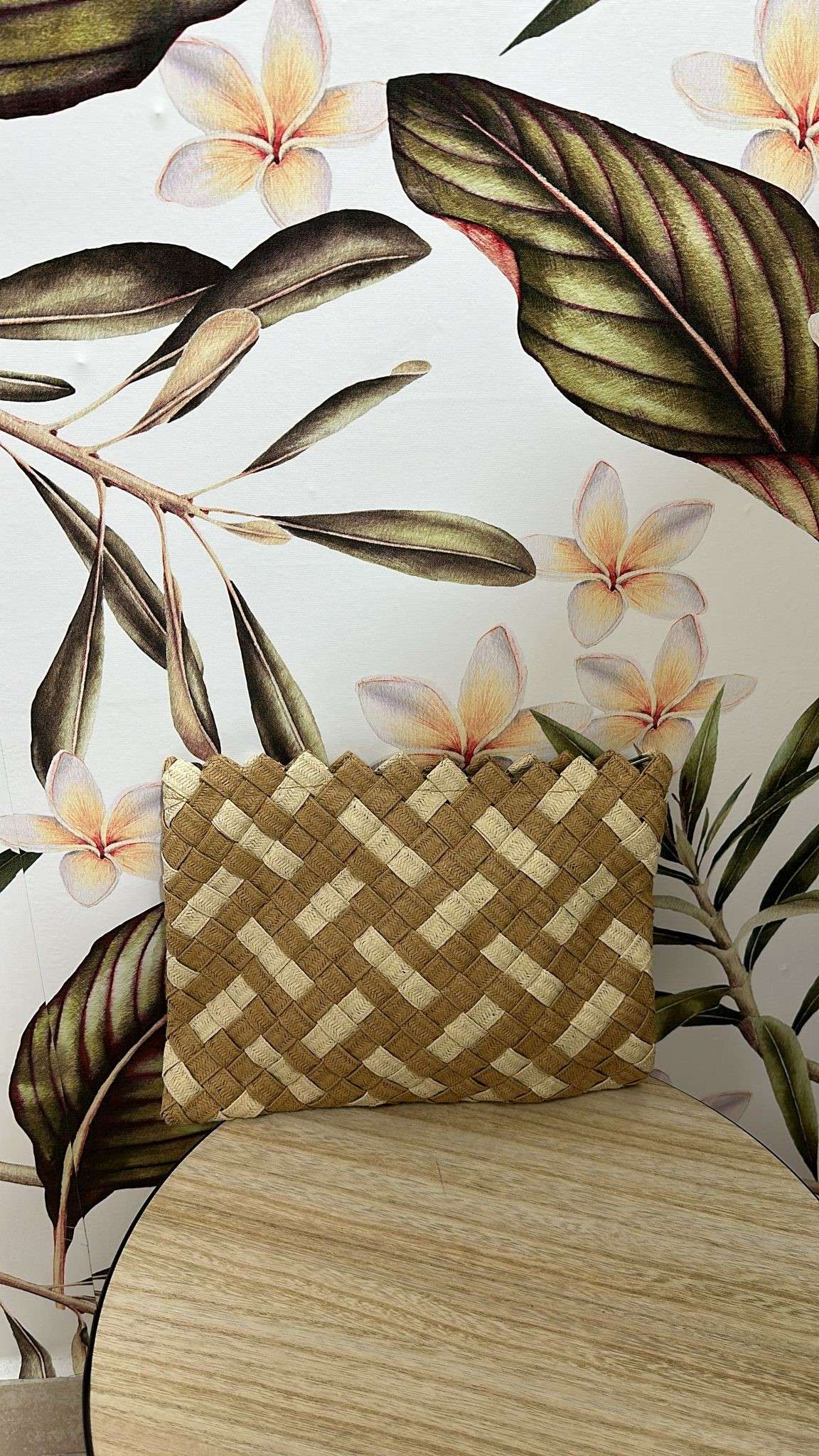 Cartera de rafia en tonos camel y beig. Lleva también la correa para colgarselo. Ideal para la temporada de primavera/verano.
