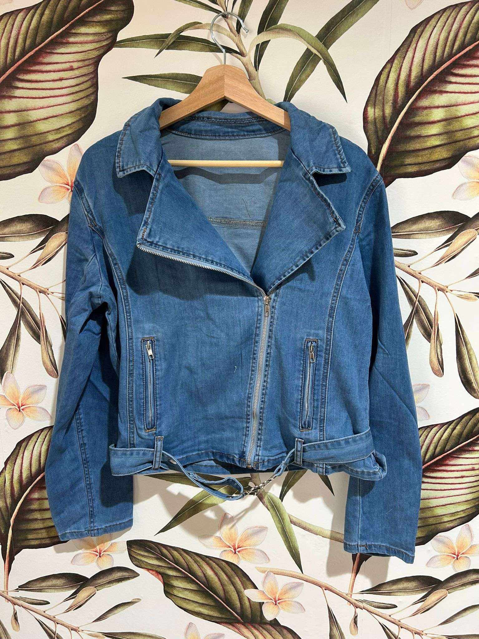 Dale un toque rebelde y moderno a tu look con esta cazadora vaquera. Su diseño con cierre cruzado y cinturón ajustable en la cintura resalta tu figura mientras aporta un estilo único. Disponible en tallas desde la S hasta la 2XL, se adapta perfectamente a diferentes estilos y cuerpos.