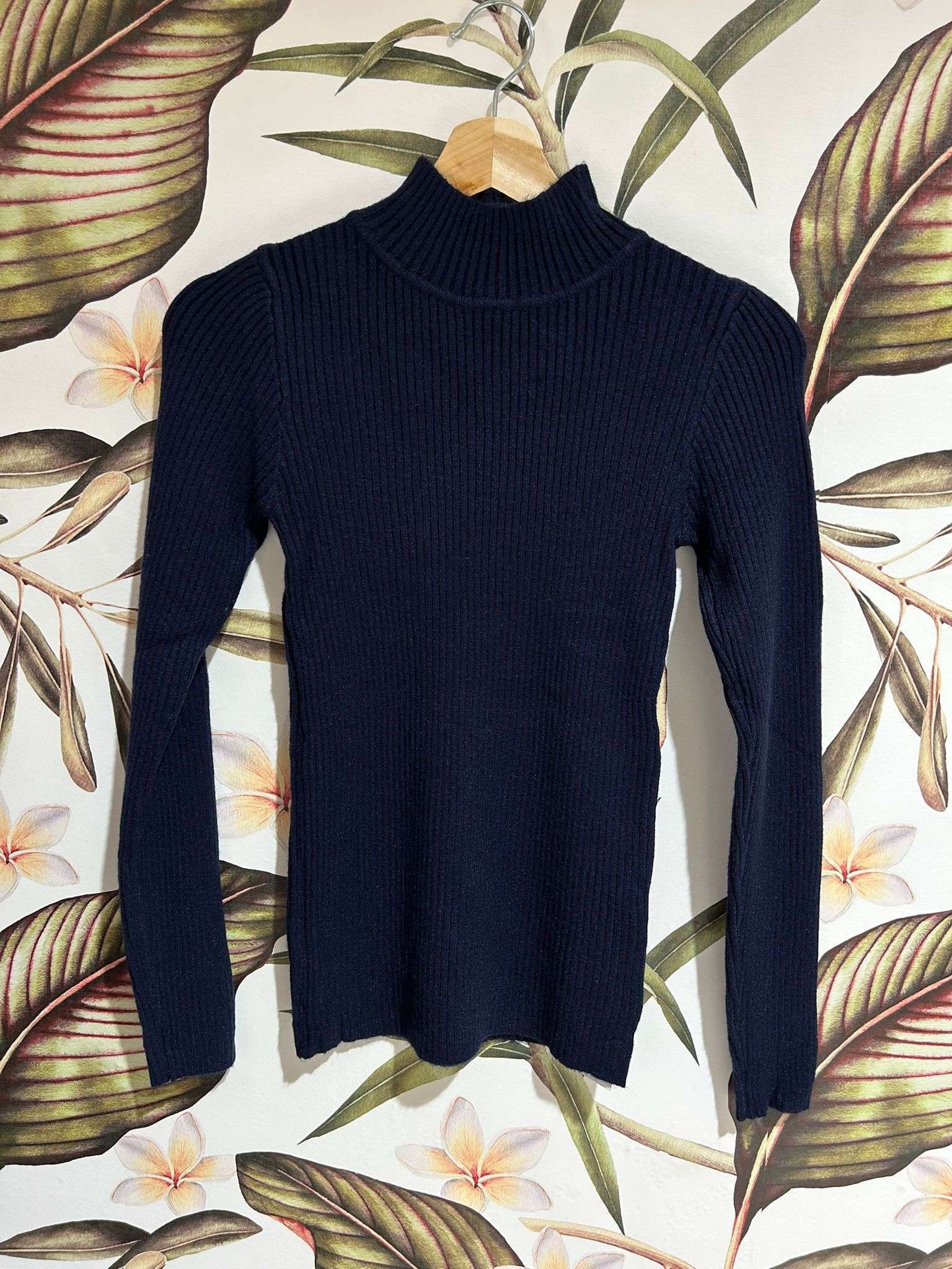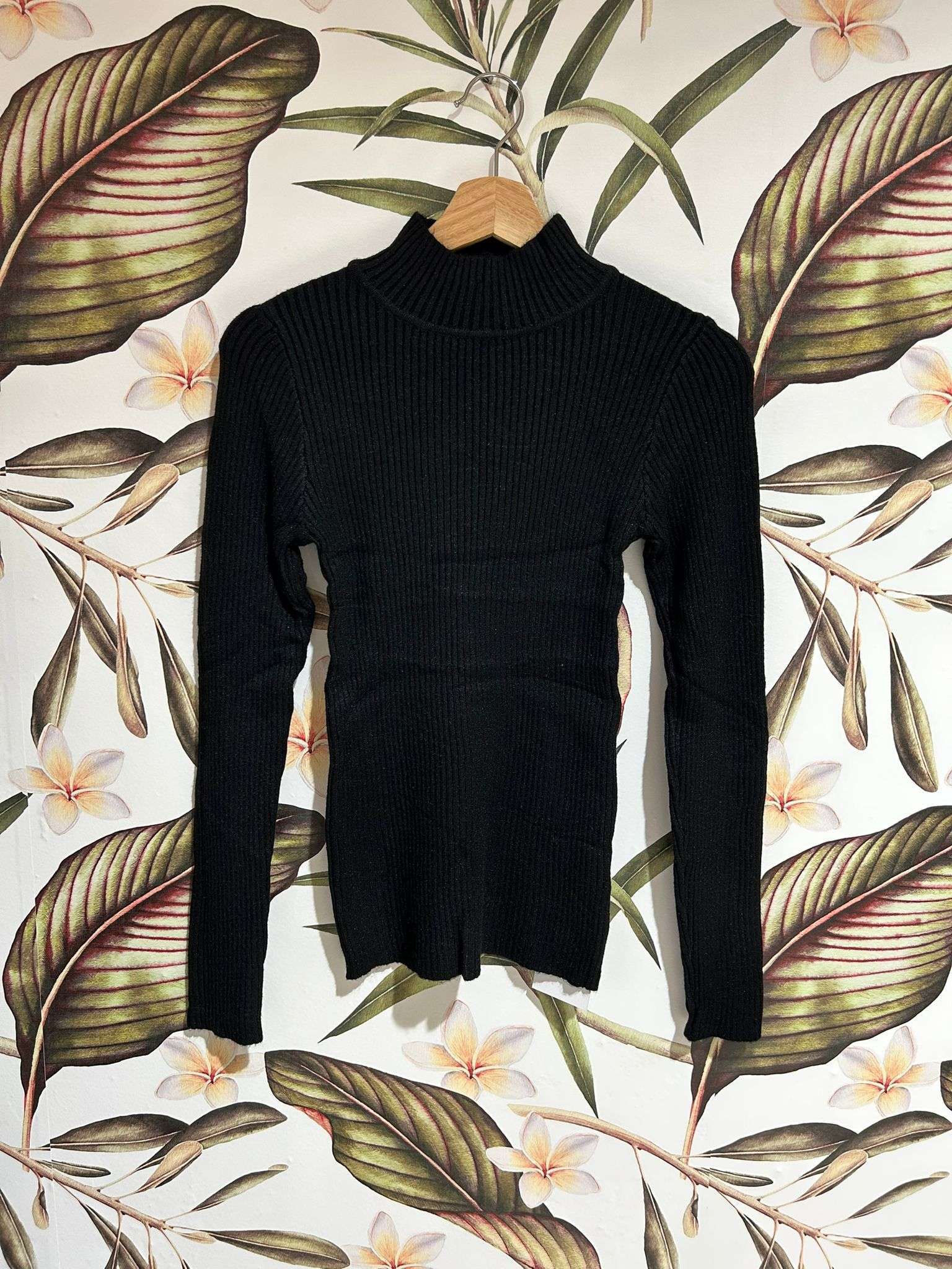 Este suéter de canalé es la prenda ideal para un look sofisticado y versátil. Su diseño ajustado con cuello alto proporciona abrigo y estilo, perfecto para cualquier ocasión. Confeccionado en un tejido suave y elástico que se adapta cómodamente a la silueta, es una opción imprescindible en tu armario. Disponible en colores negro y azul marino, en tallas S/M y L/XL.