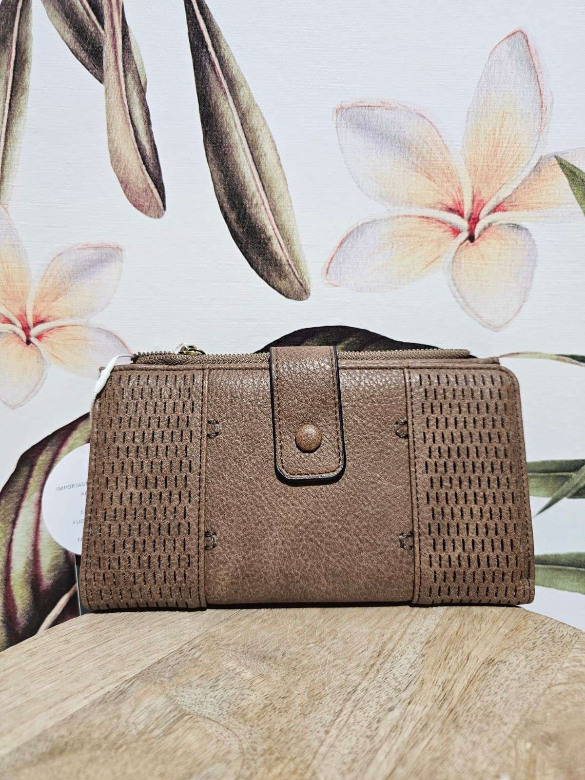 Cartera amplia y práctica, confeccionada en material efecto piel con textura perforada. Su diseño con cierre de botón y cremallera permite llevar tarjetas, billetes y monedas perfectamente organizados. Ideal para el día a día, combina funcionalidad y estilo en un solo accesorio.