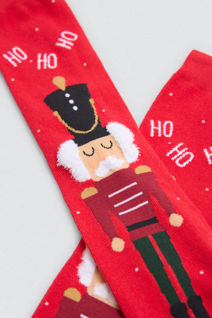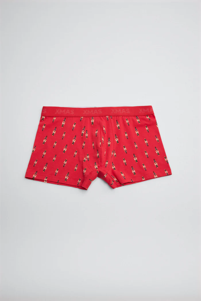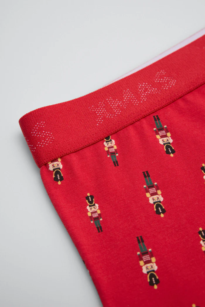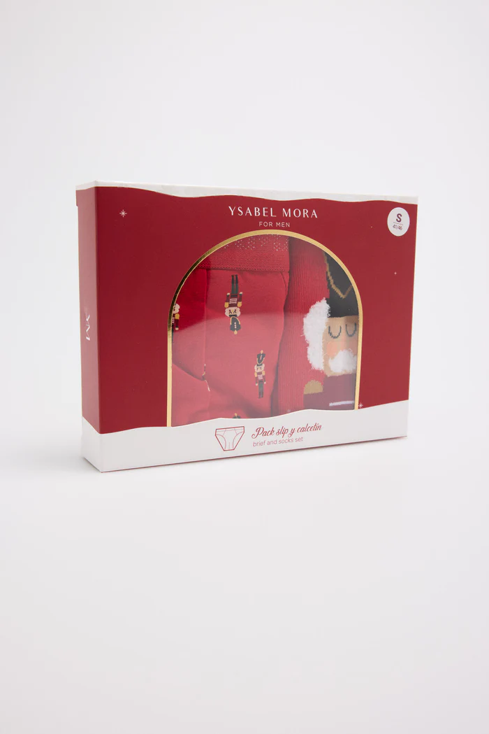 Este pack navideño para hombre incluye un bóxer cómodo y unos calcetines a juego con estampado del icónico Cascanueces. El diseño en color rojo, alegre y original, se combina con un tejido suave y elástico que garantiza un ajuste perfecto. Una forma divertida y festiva de vestir la Navidad.