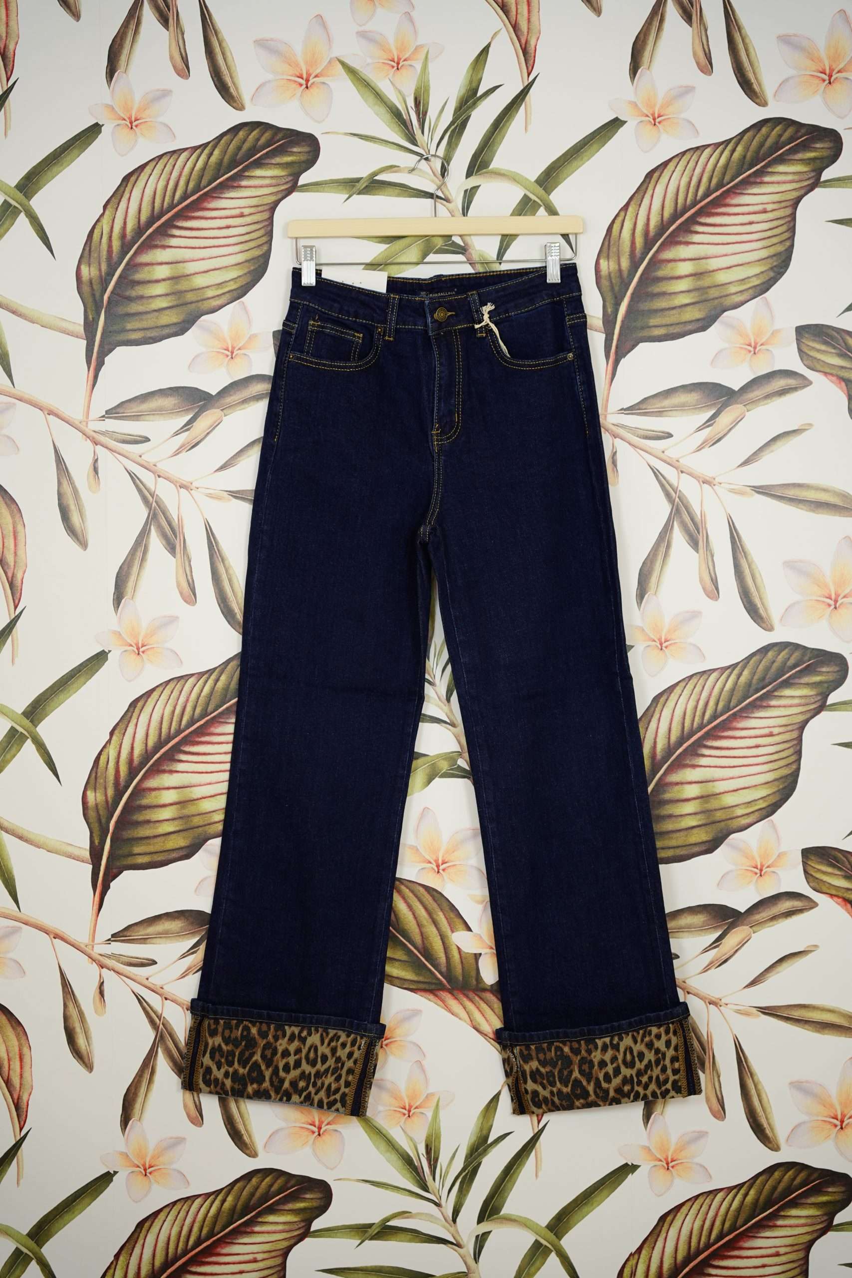 Vaquero de tiro alto, bolsillos delanteros y traseros, cierre de botón y cremallera, es elástico.