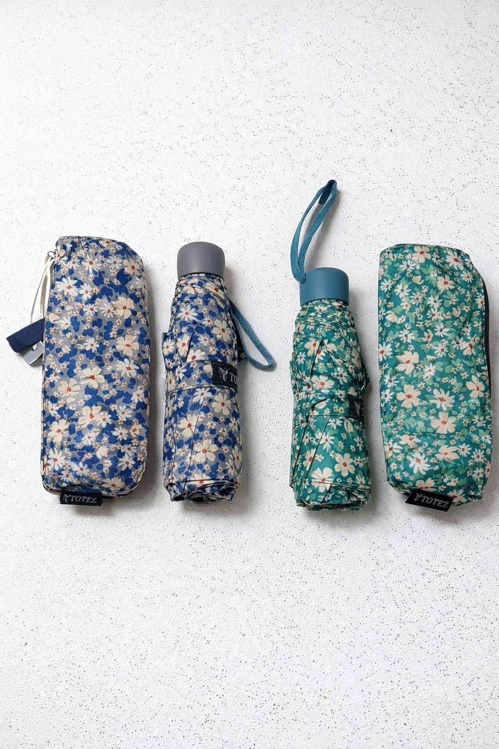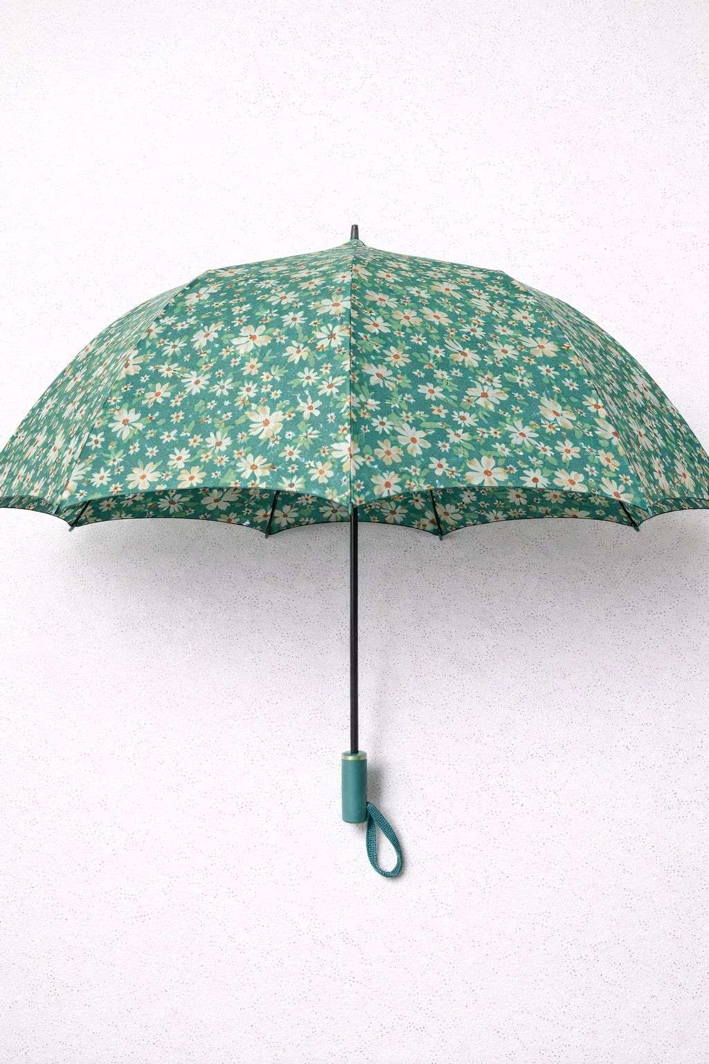 Paraguas plegable con encantador estampado floral en tonos verdes y azules. Ligero, práctico y resistente, ideal para llevar en el bolso o mochila. Diseño cómodo con mango ergonómico y cinta de sujeción, perfecto para los días de lluvia con un toque alegre y femenino. ☔🌼