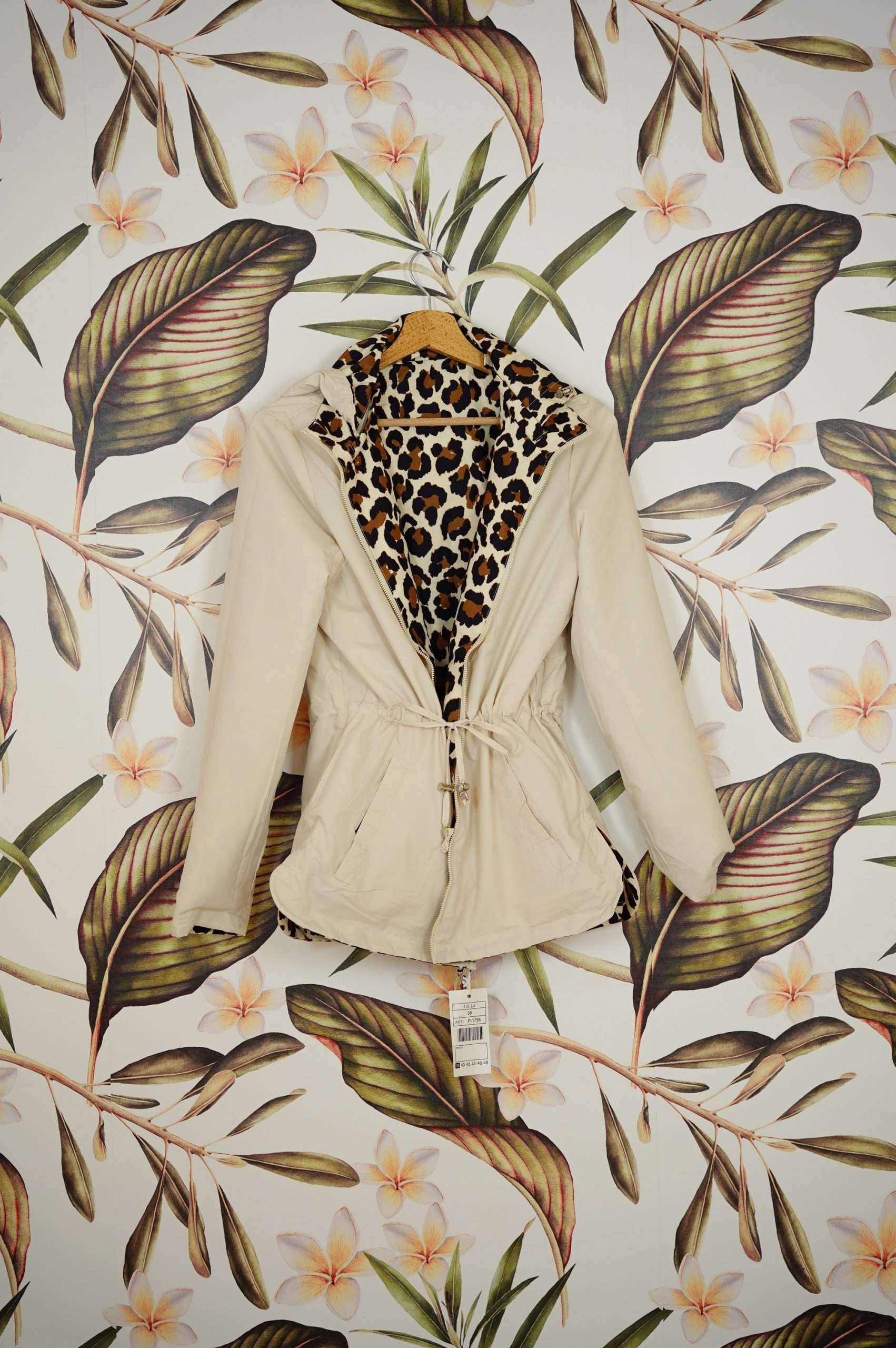 Parka reversible de animal print. Es muy cómoda y ligera.