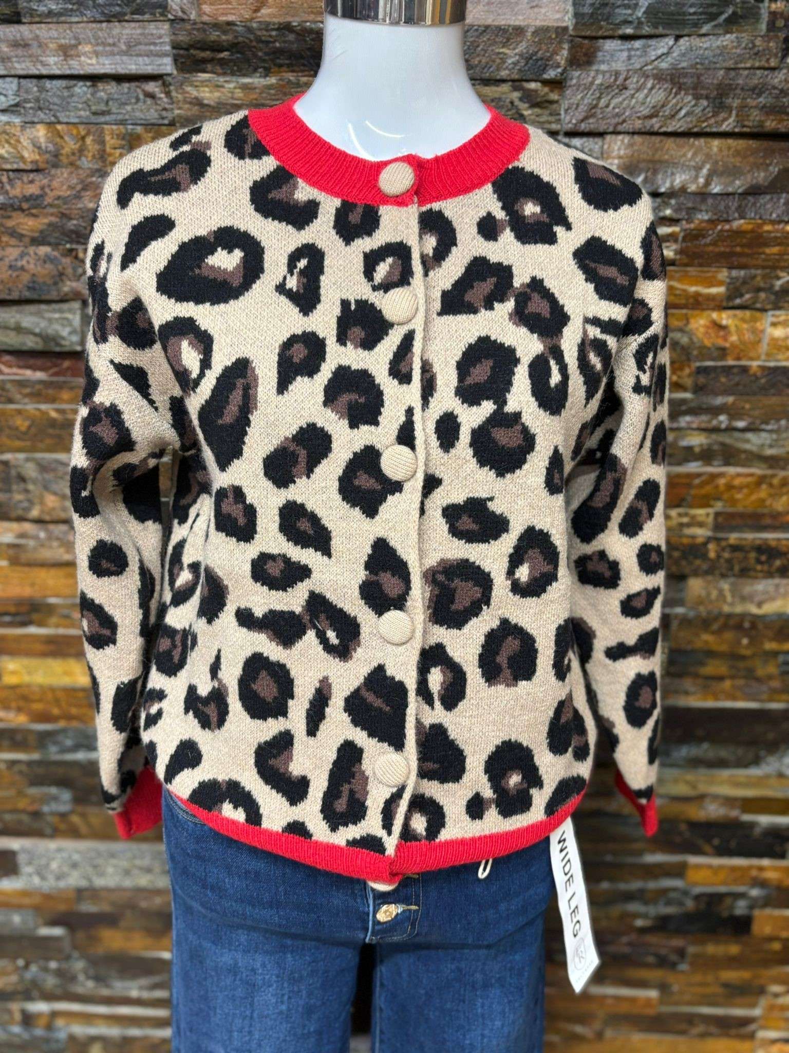 Este rebecón con diseño de leopardo y detalles en color rojo es de talla única, ideal para un look casual con un toque atrevido. Los botones decorativos añaden un detalle especial al estilo del rebecón.