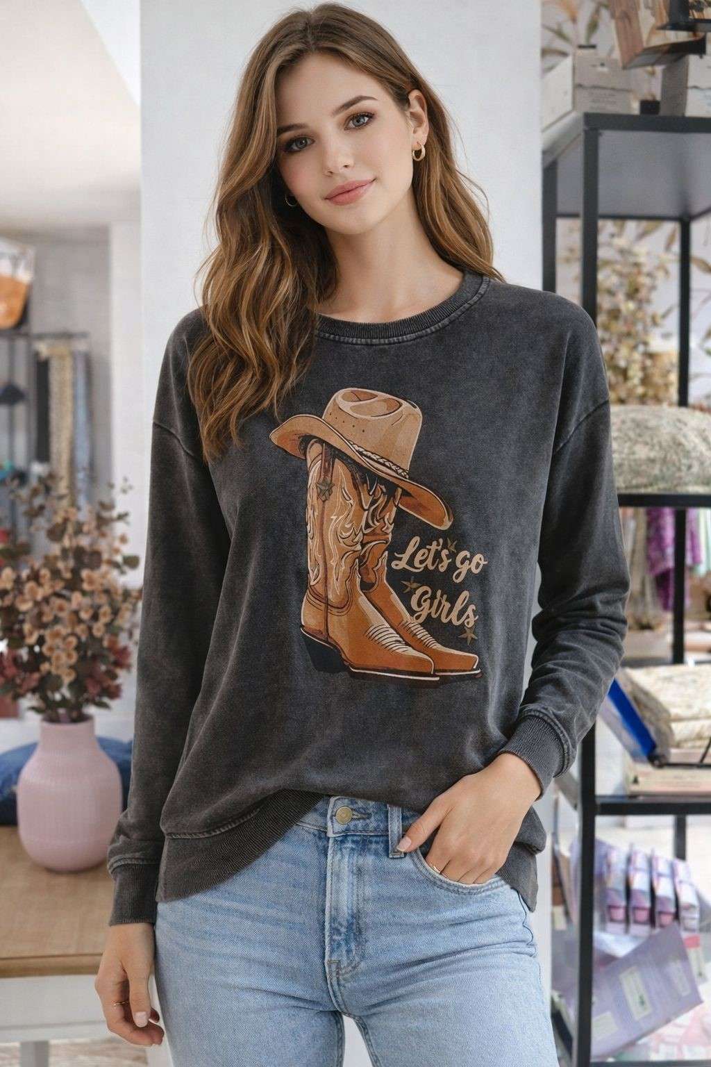 Sudadera de manga larga con estampado western y mensaje decorativo. Tejido suave y cómodo, ideal para un look casual con un toque original y desenfadado. Perfecta para el día a día.