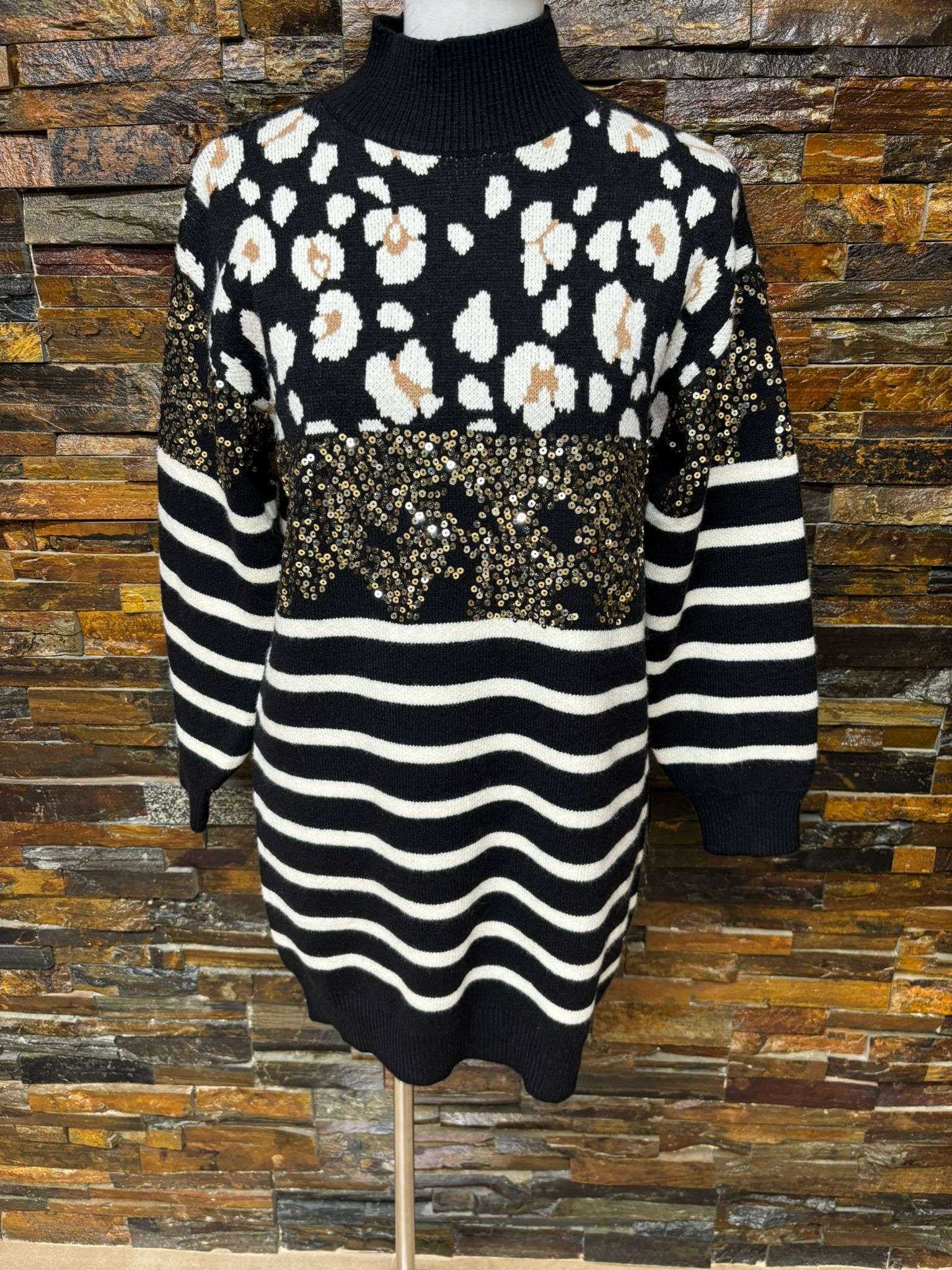 Vestido de Rayas con lentejuelas, es super calentito y mimoso. Talla Única.