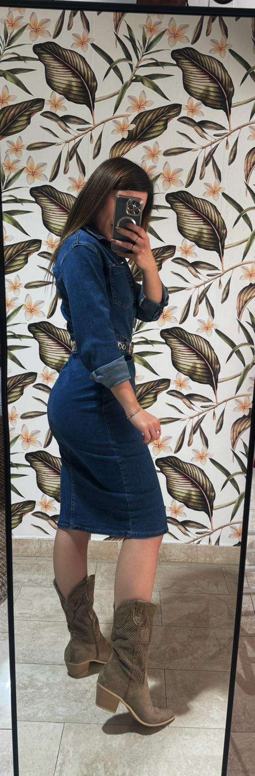 Dale un toque casual y sofisticado a tu estilo con este vestido vaquero entallado. Con su diseño de manga larga, botones frontales y falda midi, resalta tu figura con un aire moderno y versátil. Perfecto para combinar con botas o zapatillas, es ideal para cualquier ocasión, desde un paseo hasta una cita especial. ¡Un básico imprescindible en tu armario!